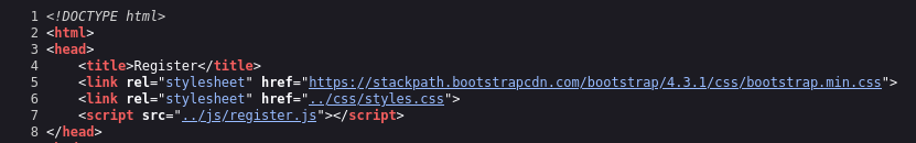 Doing this I found login.php and register.php as well as api/register.js which has an api listed. However, when trying to register, I get a warning about an incorrect api.