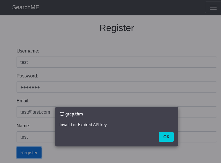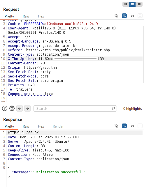 api/register.php- [‘X-THM-API-Key’] === ‘ffe60ecaa8bba2f12b43d1a4b15b8f39’