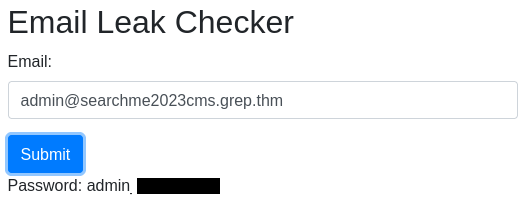 Add the admin email we found and we get the output and answer to the final question.