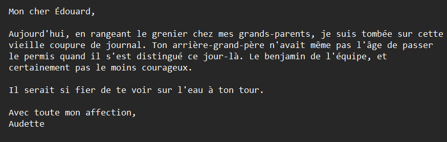 - the writer says he would be proud to see Édouard on the water too