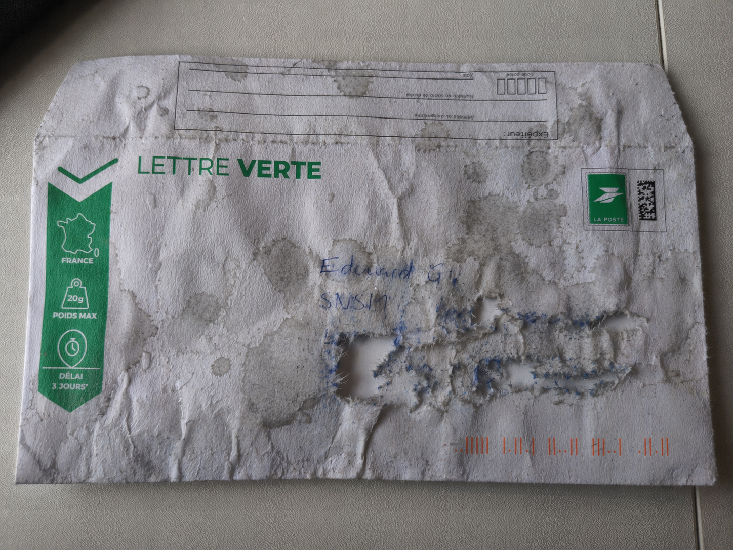 Next, I examined the damaged envelope.